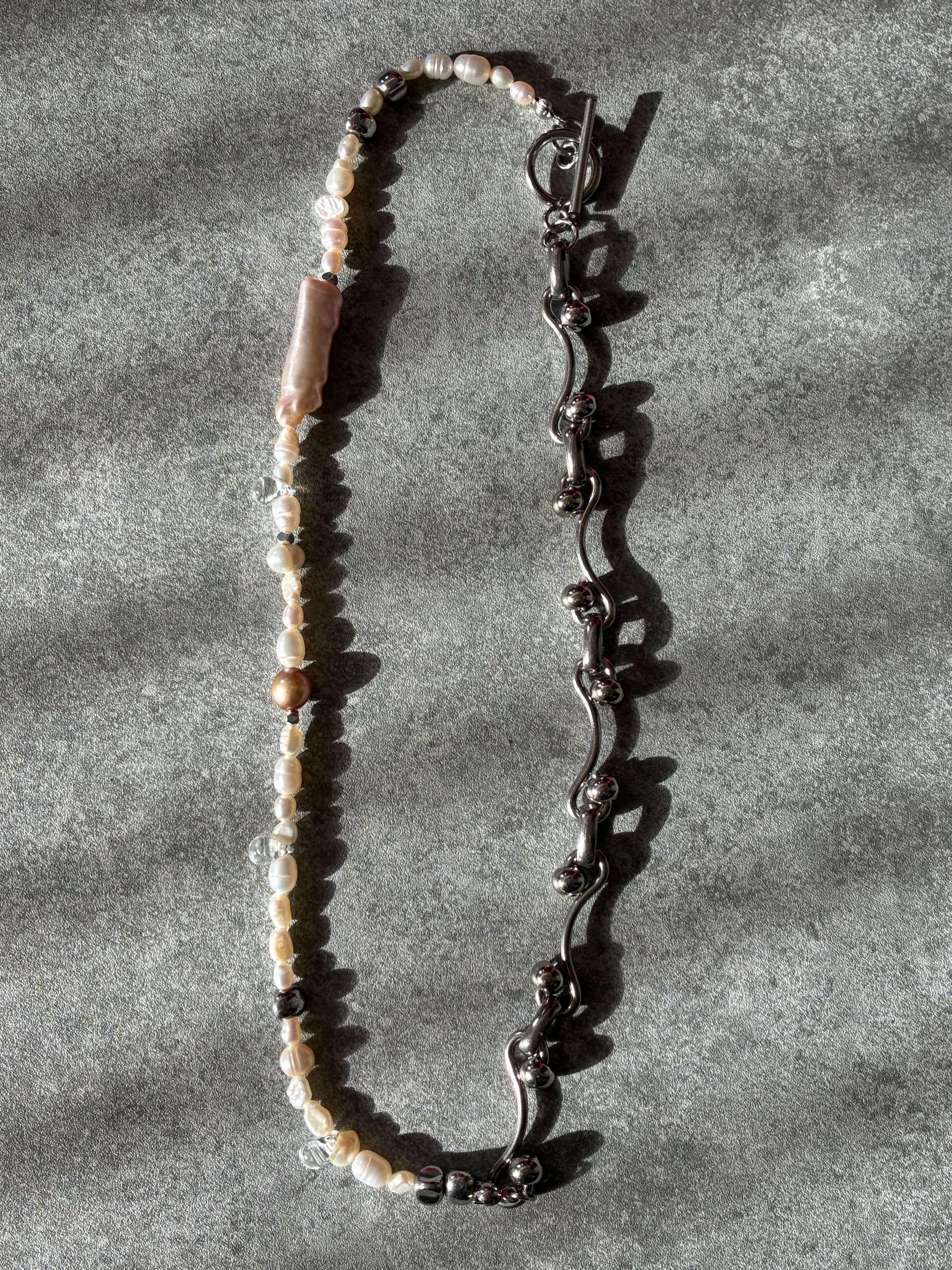 【necklace】淡水ビワパール×デザインステンレスチェーン